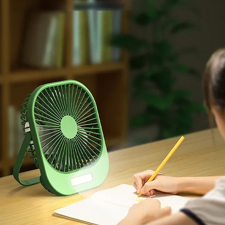 ویژگیهای محصول✅️دارای چراغ LED مناسب مطالعه و روشنایی شبانه ✅️طراحی سبک، کمجا و قابل حمل ✅️مجهز به باتری داخلی قابل شارژامکان شارژ با کابل USB و پاوربانک ✅️مناسب برای داخل چادر، میز کار، اتاق خواب و سفر✅️تنظیم شدت باد در چند مرحله با دکمههای کنترلی✅️عملکرد دوگانه به عنوان پنکه و چراغ