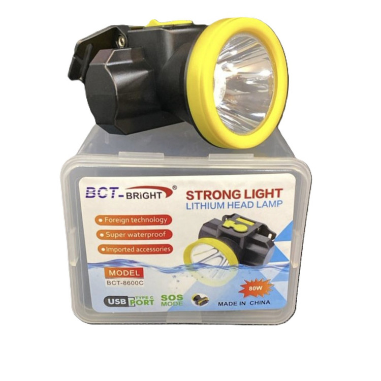 چراغ پیشانی BCT مدل BCT-8600ساخت چینتوان 80واتUSBپورت TYPE Cحالت SOSتکنولوژی خارجیفوق العاده ضد آبلوازم جانبی وارداتی