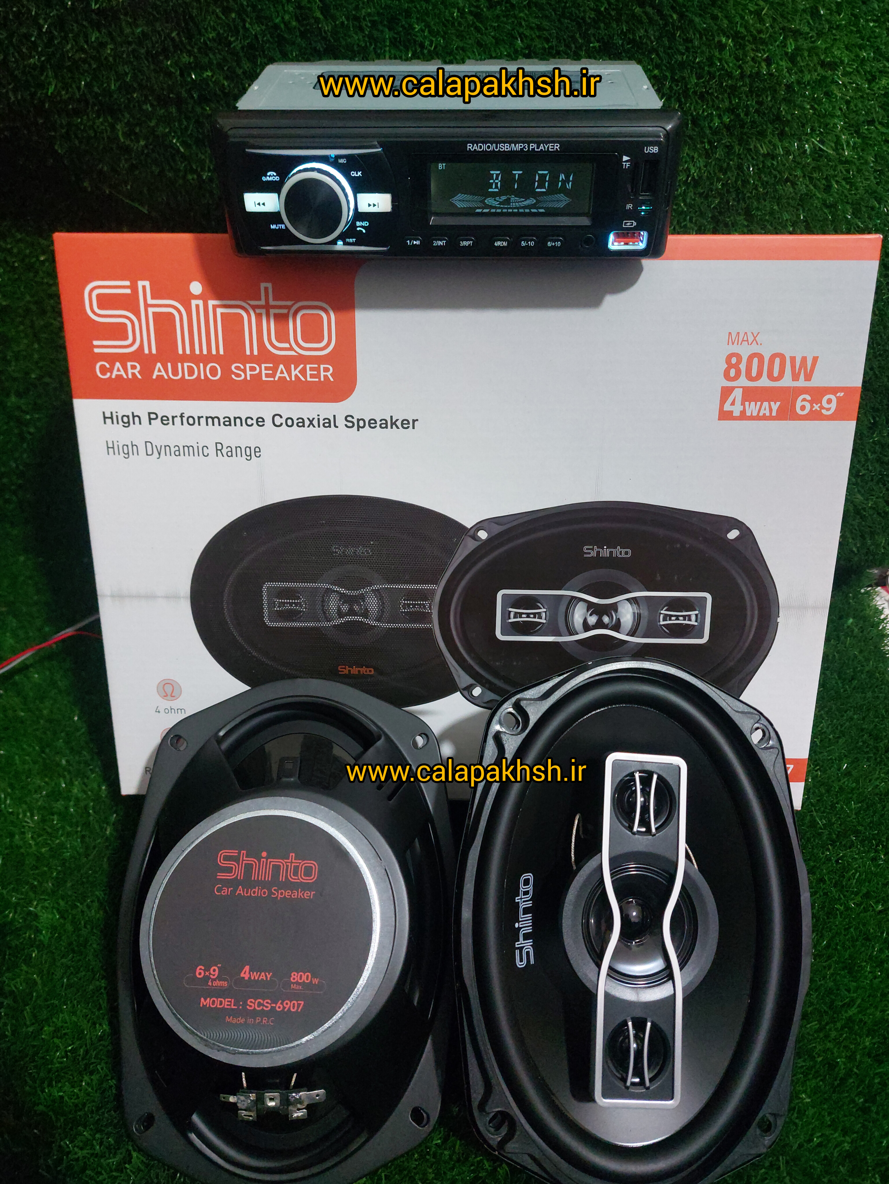 پک درجه یک ضبط و باند یک عدد پخش مدل ۹۲۰ ایسی بزرگ برد بزرگ بلوتوثدار همراه یک جفت بلندگو بیضی شینتو طرح جدید بیس عالی