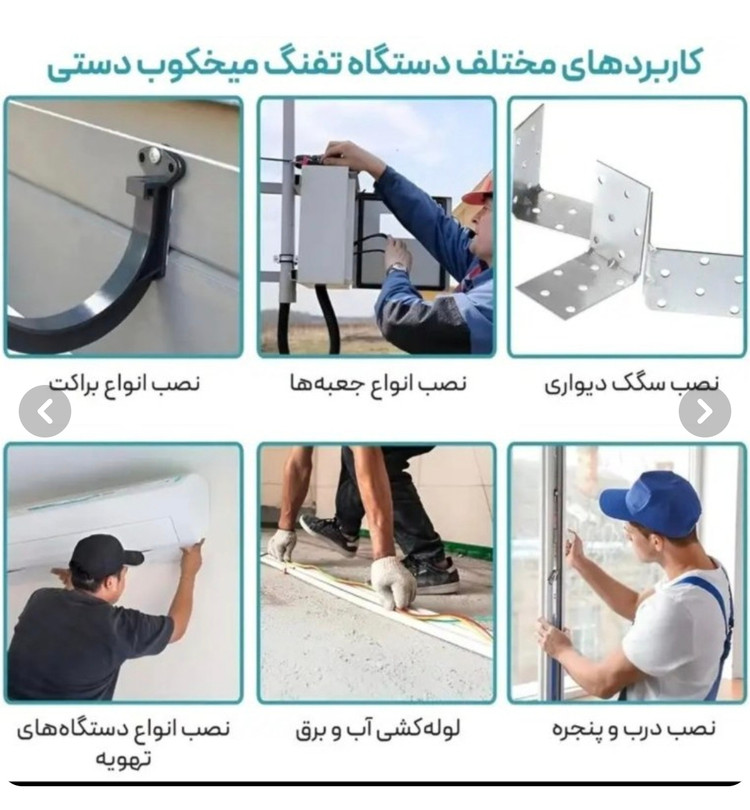 ✅️۲عدد میخ چاشنی✅️کیف بی ام سی✔️ عینک محافظ✔️ برس تمیز کننده لوله تفنگ میخکوب✔️ ظرف روغنکاری✔️ ست فنر اضافه✔️ سر تفنگی اضافه✔️ کیف قابل حمل 🔥 امکان استفاده در بتن، چوب، پلاستیک، ورق های نازک فلزی و ….🔥 قابلیت استفاده میخ تا ۵ سانت🔥 کارکرد ساده و قوی🔥 سبک و قابل حمل✅ کیفیت و قدرت بسیار مطلوب
