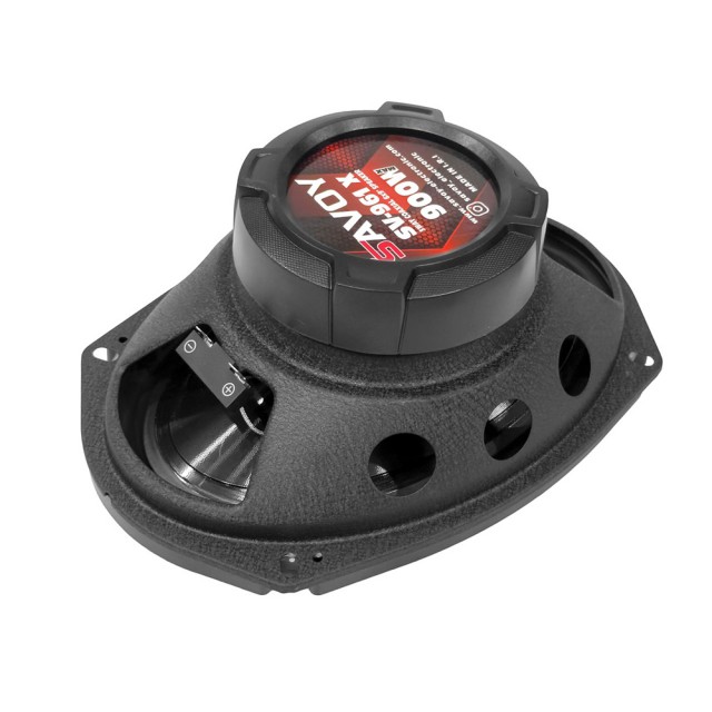 با طراحی 6×9 اینچی، یکی از محصولات حرفهای برند Savoy است که ظاهر جذاب و مدرنی دارد. طراحی آن به صورت بیضیشکل بوده و بدنهی بیرونی از متریال مقاوم ساخته شده است که علاوه بر دوام بالا، جلوهای زیبا به فضای داخلی خودرو میدهد.